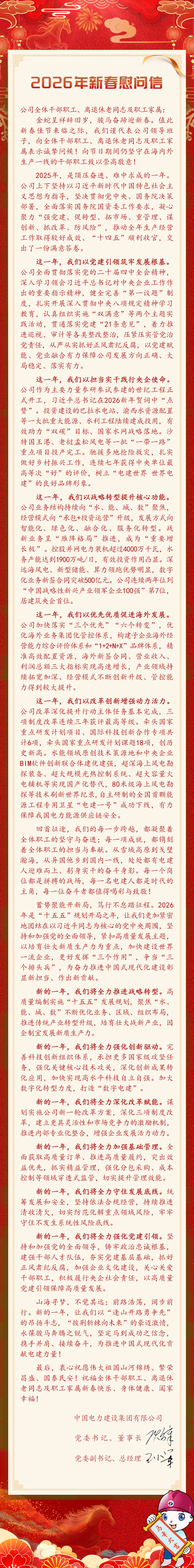 中國電建2026年新春慰問信